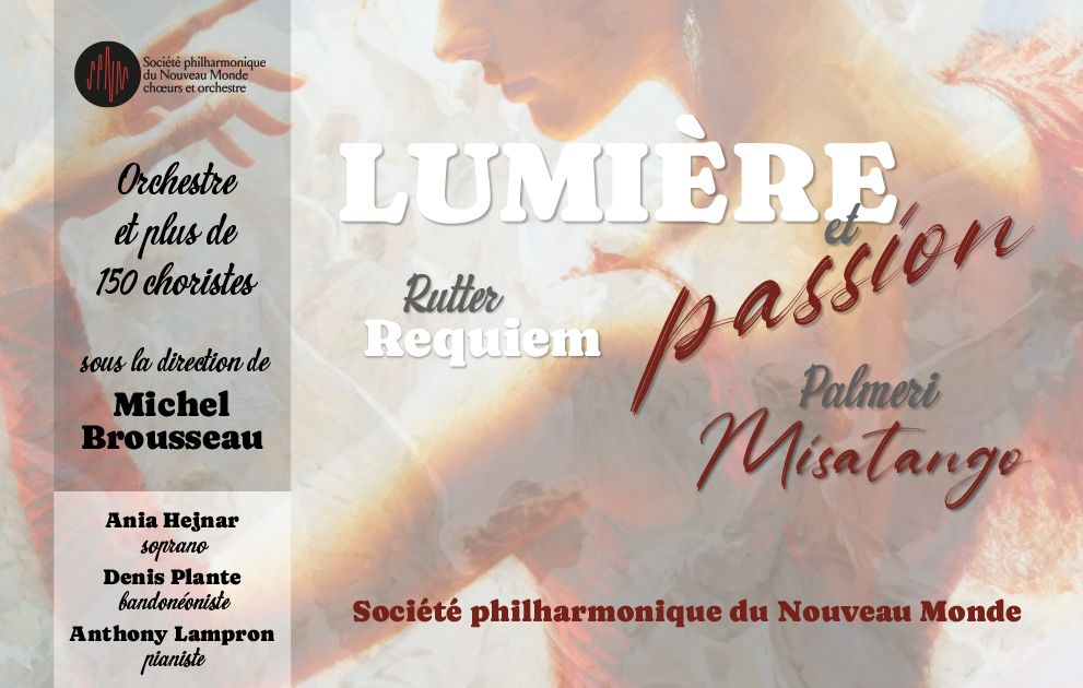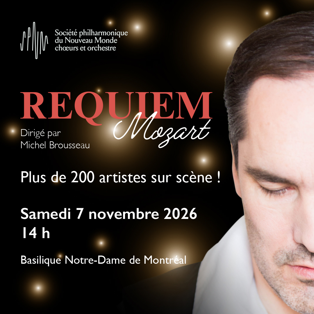 Fondée en 1998, la Société philharmonique du Nouveau Monde (SPNM) regroupe quatre formations musicales : un orchestre professionnel, soit l’Orchestre philharmonique du Nouveau Monde (OPNM), et trois chœurs que sont le Chœur philharmonique du Nouveau Monde • Montréal, le Chœur philharmonique du Nouveau Monde • Basses-Laurentides (Les Chanteurs de Sainte – Thérèse de 1961 à 2019) et le Chœur philharmonique du Nouveau Monde • Ottawa (le Ottawa Classical Choir/Chœur classique d’Ottawa jusqu’en 2021). Sous la direction d’un seul chef, Maestro Michel Brousseau, ces quatre entités conjuguent leurs talents pour interpréter les grandes œuvres du répertoire classique pour chœur et orchestre (voir https://spnm.ca/repertoire/ pour la liste des concerts des 15 dernières années).
